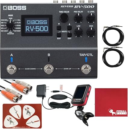 Packing the latest boss dsp and updated algorithms the rv 6 gives you eight highly musical reverb effects in one compact pedal. Packing the latest boss dsp and updated algorithms the rv 6 gives you eight highly musical reverb effects in one compact pedal. Boss dd 8 digital delay guitar effects pedal bundle with blucoil slim 9v power supply ac adapter 2 pack of pedal patch cables and 4 pack of celluloid guitar picks. Add body and depth to your core tone with standards like room hall and plate dial up swirling richness with the modulate setting or surf it up with a vintage style spring reverb.